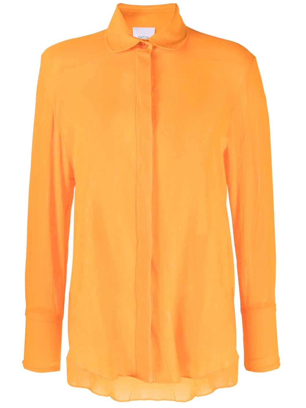 Painter textured cotton shirt Patou's eccentric spirit is captured in the vibrant construction of this bold orange shirt. Boasting a lightly crinkled design, it's elevated by tonal stitching. Made in France Composition Cotton 100% SIZE & FIT Model measurements Height 5 ft 10 in(1.78 m) Bust/Chest 31.49 in(80 cm) Hips 33.85 in(86 cm) Waist 24.01 in(61 cm) Measurement SLEEVE LENGTH 18.11 in(46 cm) LENGTH 30.7 in(78 cm) WAIST 37.79 in(96 cm) BUST 37.79 in(96 cm) Shoulder Width 16.92 in(43 cm) Washing instructions Dry Clean Only