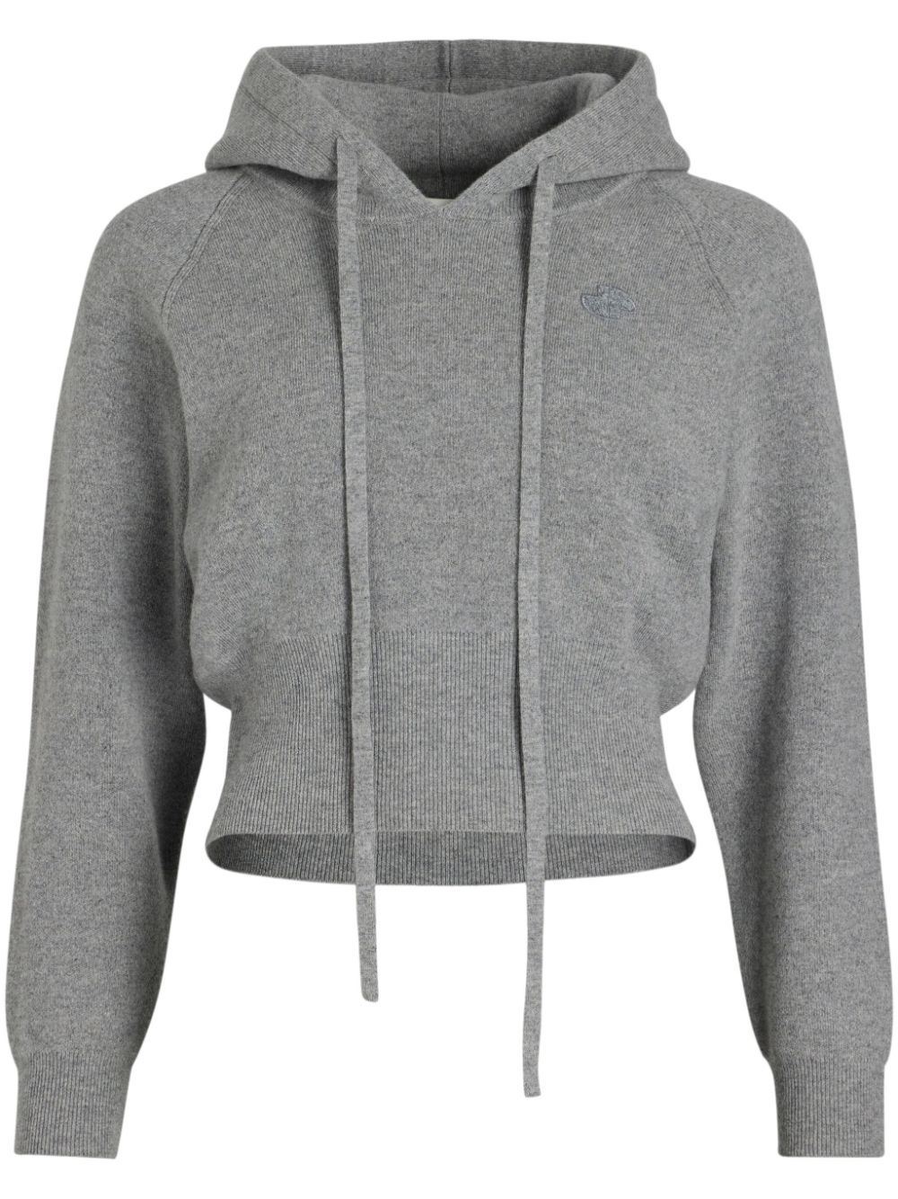 knitted hoodie Highlights - Grey - Wool-cashmere blend - Embroidered logo - Fine knit - Ribbed cuffs and hem - Drawstring hood - Long sleeves - Cropped Imported Composition Wool 100%, Cashmere 100%