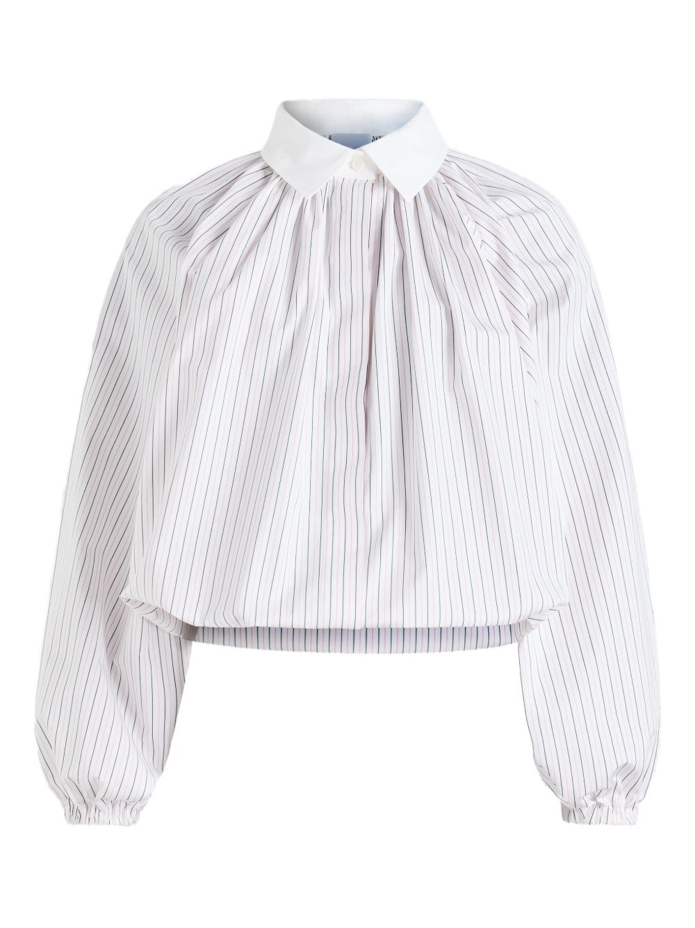 pinstripe-pattern cotton blouse Highlights - White - Pinstripe pattern - Gathered neckline - Long sleeves - Balloon sleeves - Button fastening Imported Composition Organic Cotton 100% Washing instructions Machine Wash