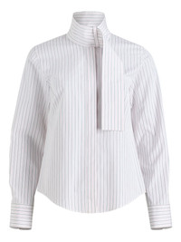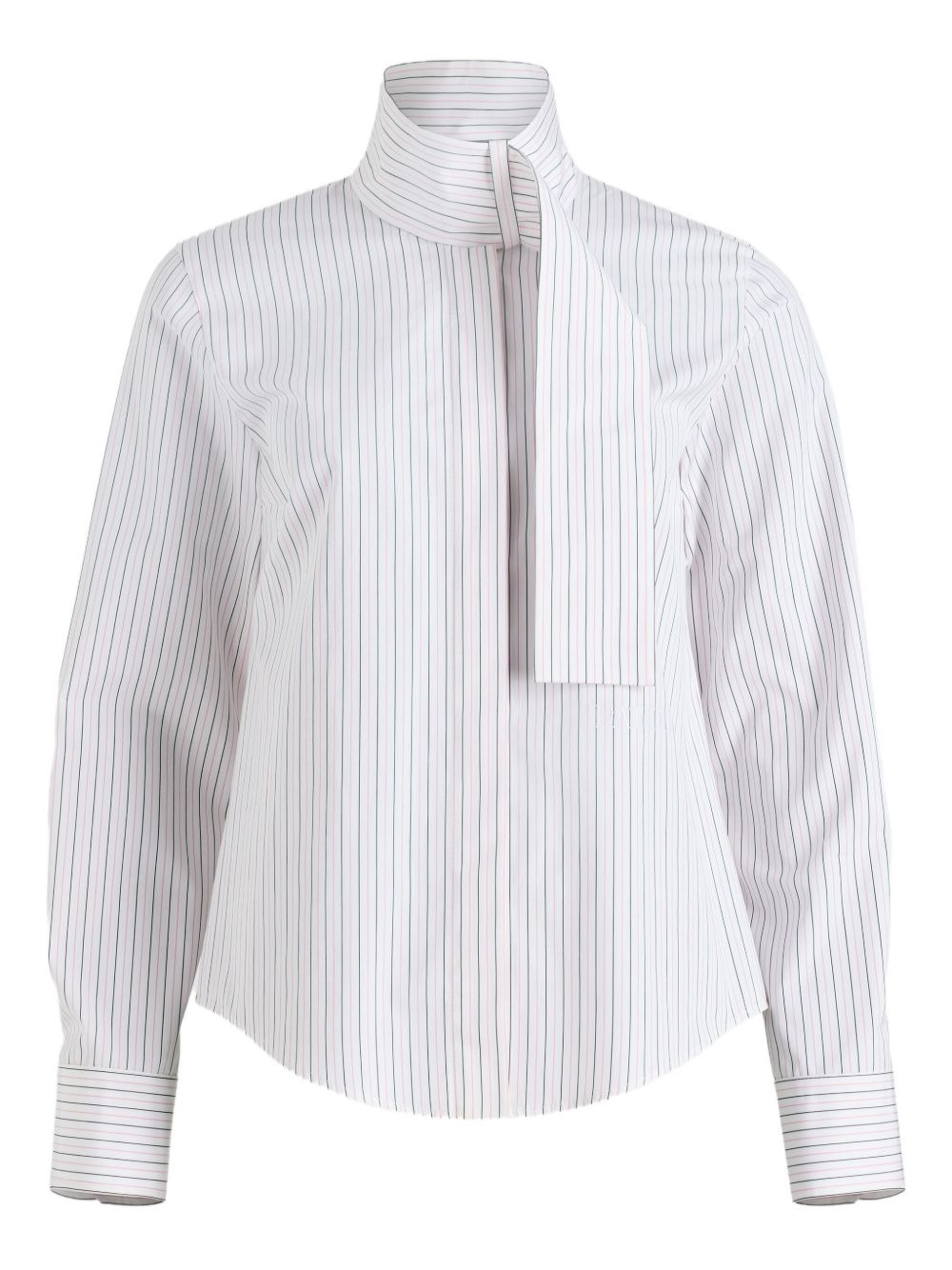 pinstripe scarf-collar blouse Highlights - White - Pinstripe pattern - Scarf collar - Long sleeves - Concealed button fastening - Buttoned cuffs Imported Composition Organic Cotton 100% Washing instructions Machine Wash