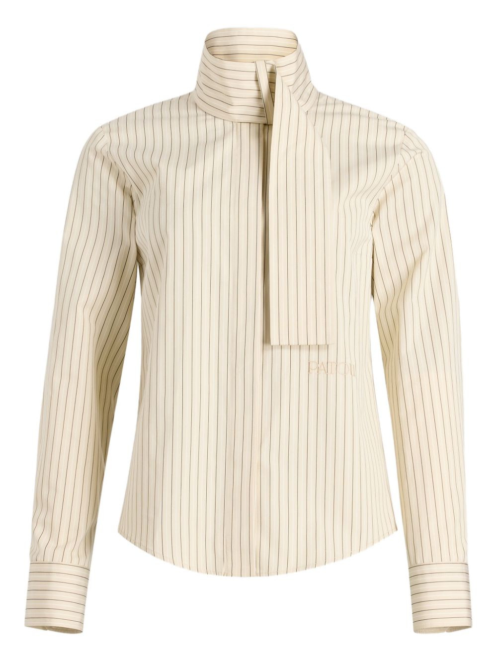 pinstripe scarf-collar blouse Highlights - Beige - Pinstripe pattern - Scarf collar - Long sleeves - Buttoned cuffs Imported Composition Organic Cotton 100% Washing instructions Machine Wash