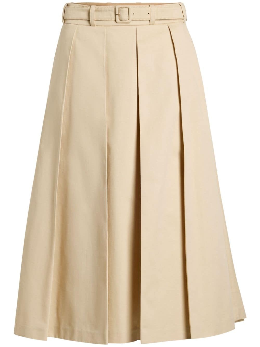 pleated midi skirt Highlights - Sand beige - Organic cotton - Fully pleated - Belt loops - Front buckle fastening - Two side slit pockets - Flared hem - Mid-length Imported Composition Organic Cotton 100% SIZE & FIT Measurement LENGTH 32.28 in(82 cm) WAIST 27.55 in(70 cm)