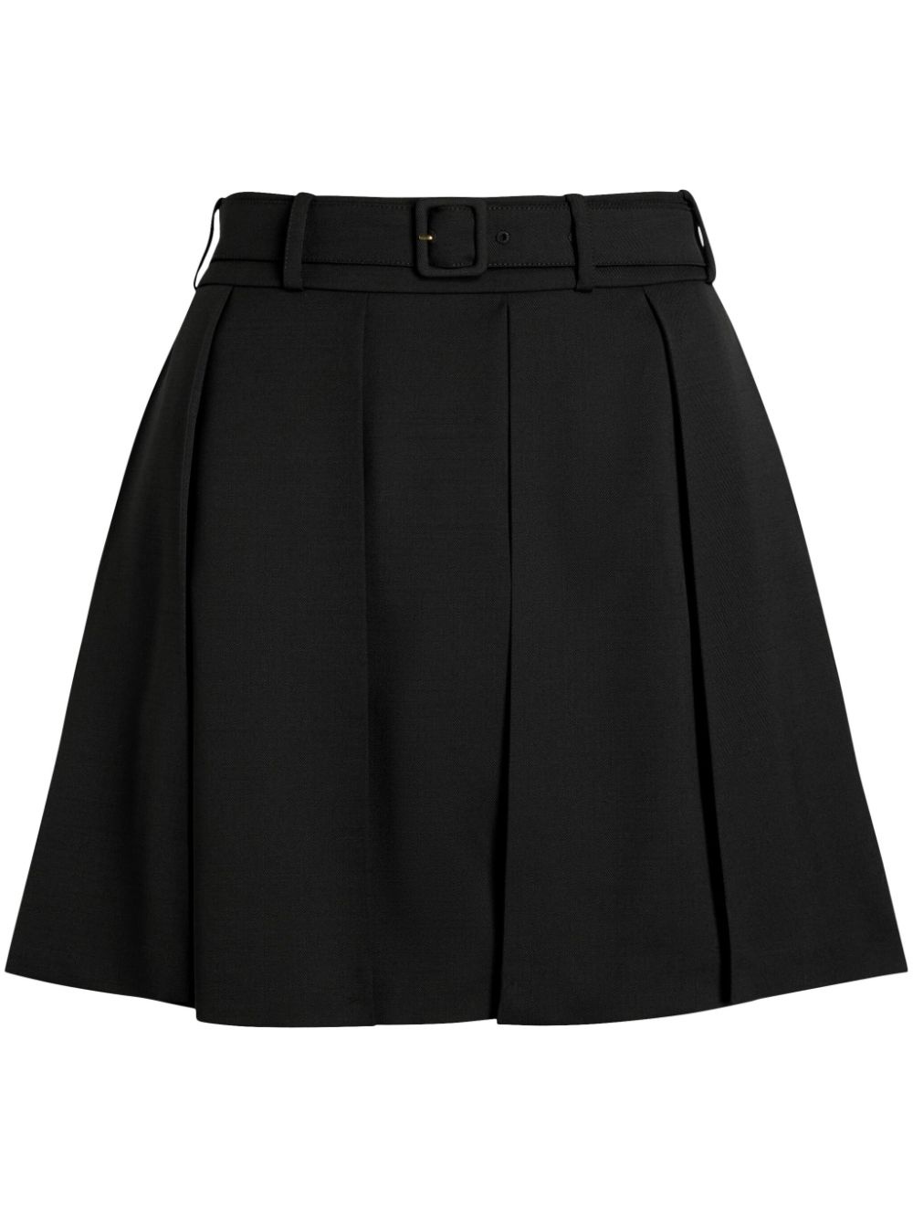 pleated mini skirt Highlights - Black - Virgin wool blend - Fully pleated - Belt loops - Front buckle fastening - Straight hem - Thigh-length Imported Composition Virgin Wool 97%, Elastane 3%