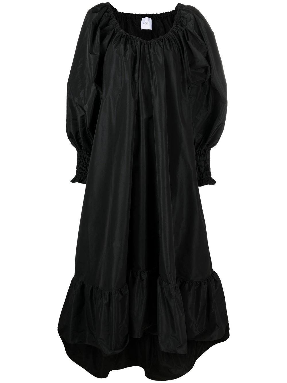 puff-sleeve maxi dress Patou enhances the classic black dress with a ruched elasticated neckline. The voluminous silhouette is enhanced by long balloon sleeves and a ruffled high-low hem. Imported Composition Polyester 100% SIZE & FIT Model measurements Height 5 ft 10 in(1.77 m) Bust/Chest 32.67 in(83 cm) Hips 37 in(94 cm) Waist 27.55 in(70 cm) Measurement HIPS 60.62 in(154 cm) WAIST 48.81 in(124 cm) FittingInformation This piece fits true to size. We recommend you get your regular size Cut for a loose fit. Comes with an adjustable belt for a flexible fit at the waist Made with a mid-weight non-stretch fabric Washing instructions Dry Clean Only