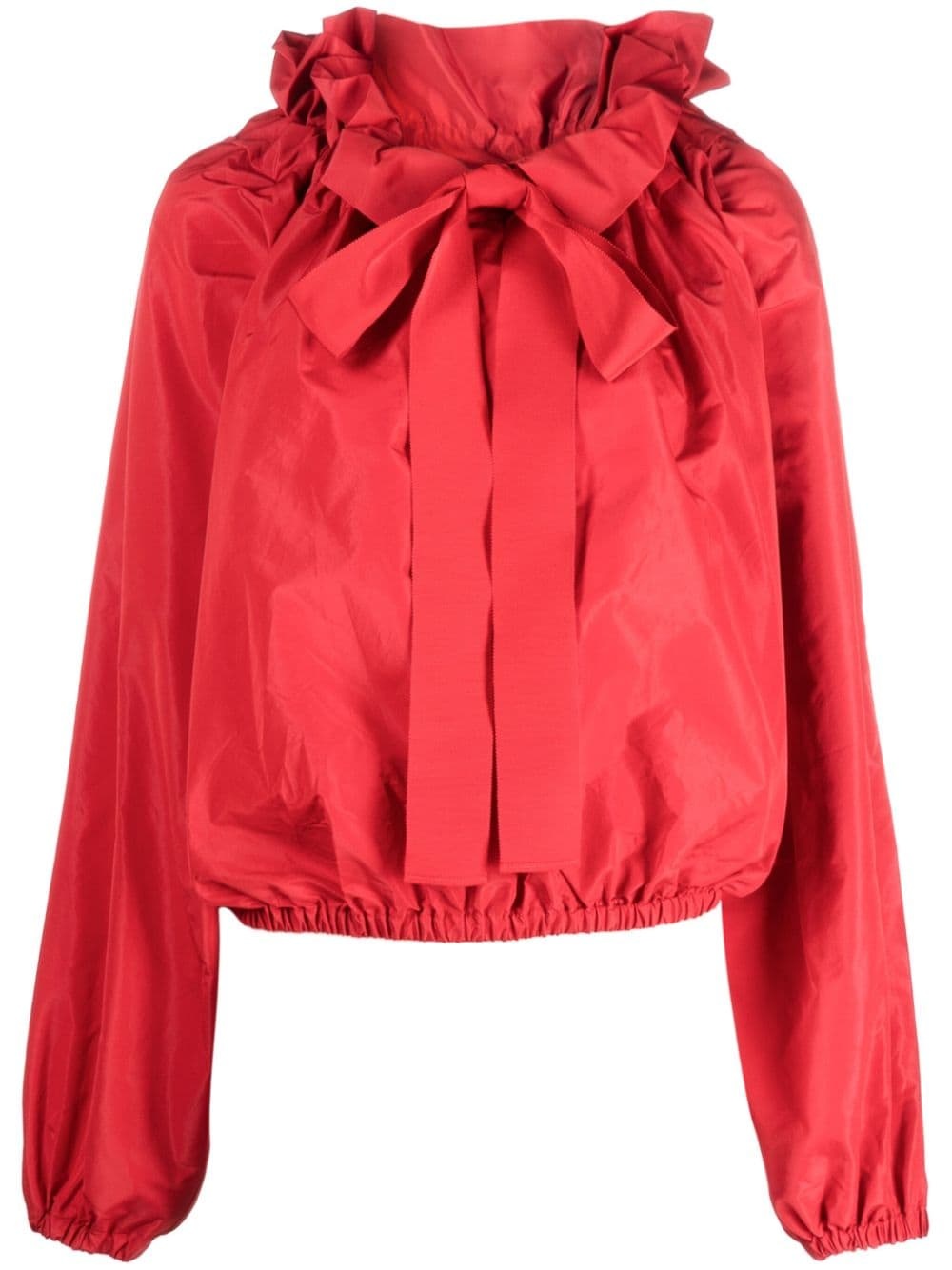 pussy-bow puffed top Characterized by its puffed silhouette, this Patou top is crafted from faille in a bright red colour. A pussy bow collar and long puffed sleeves complete the dramatic piece. Highlights - Bright red - Recycled polyester - Faille - Pussy-bow collar - Puffball design - High neck - Long puff sleeves - Elasticated waistband Imported Composition Outer: Recycled Polyester 100% SIZE & FIT Model measurements Height 5 ft 11 in(1.8 m) Bust/Chest 31.49 in(80 cm) Hips 35.82 in(91 cm) Waist 24.8 in(63 cm) Measurement CHEST 43.7 in(111 cm) HIPS 26.77 in(68 cm) LENGTH 22.44 in(57 cm) FittingInformation Designed to be unstructured, offering a loose fit throughout The elasticated waist allows for a comfortable fit Made from a midweight non-stretch fabric This piece fits true to size – take your usual size