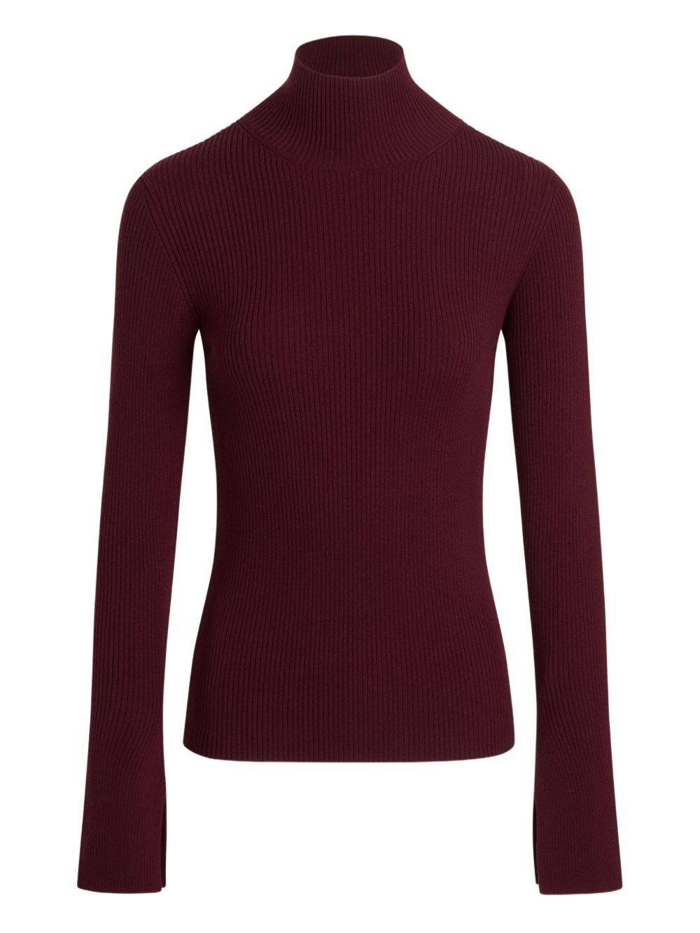 ribbed high-neck jumper Highlights - Burgundy - Ribbed texture - High neck - Long sleeves - Split cuffs - Slim fit Imported Composition Merino 100% Washing instructions Hand Wash