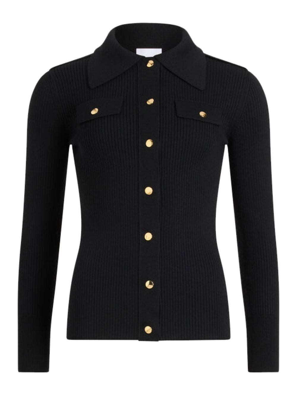 ribbed wool cardigan Highlights - Black - Ribbed texture - Front button fastening - Collared neckline - Chest pockets - Gold-tone buttons Imported Composition Merino 100% Washing instructions Dry Clean Only
