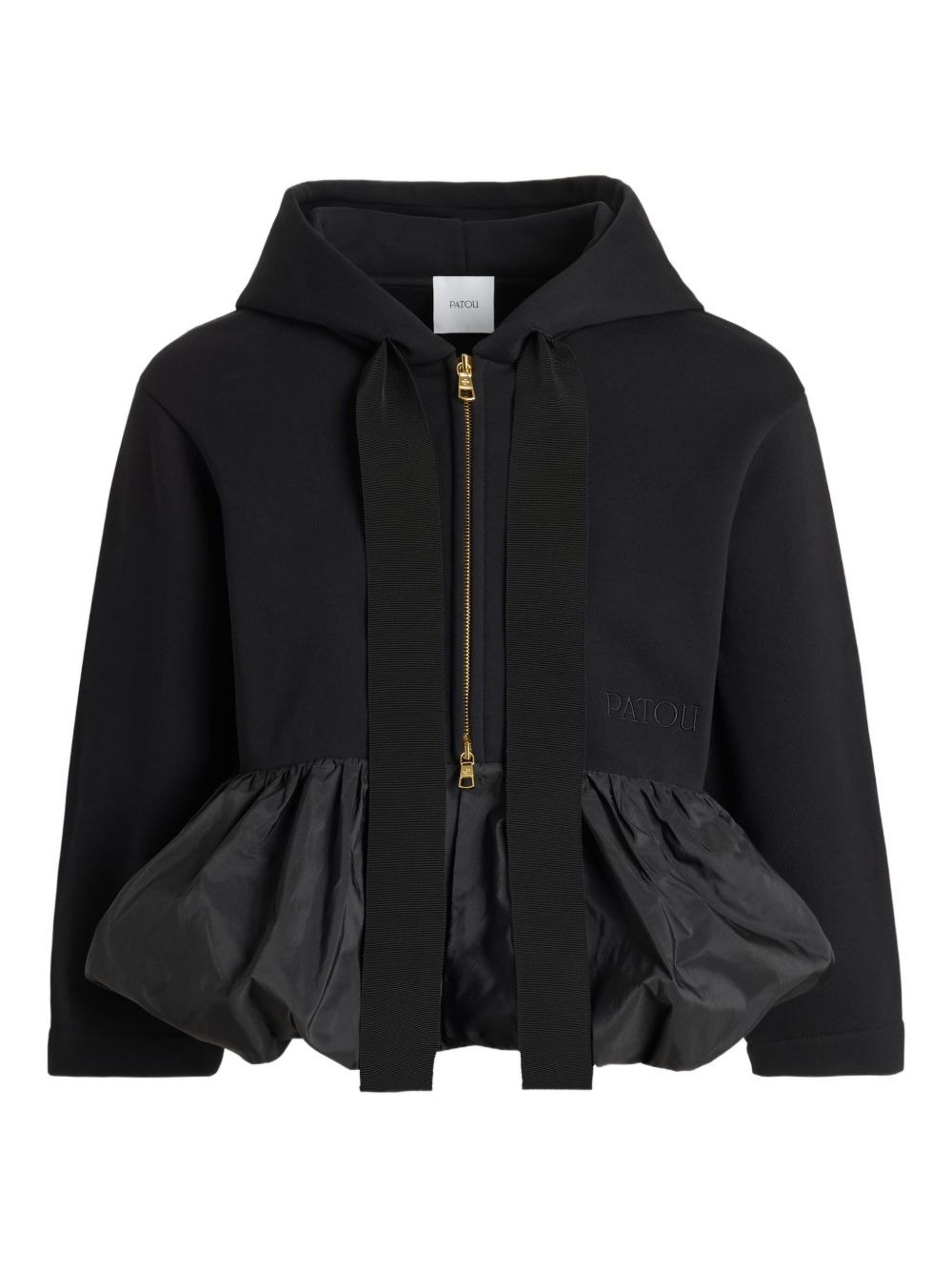 ruffle-hem zip-up hoodie Highlights - Black - Hooded neckline - Zip fastening - Ruffle hem - Three-quarter sleeves Imported Composition Organic Cotton 100% Washing instructions Read Manufacturer Guidelines