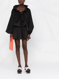 drawstring-collar organic-cotton blouse Introduced as part of Patou’s SS22 collection, this blouse grabs attention due to its charismatic ruffled collar. Fastened with a front bow, the piece is designed with bishop sleeves that add to the distinctive look. Highlights - Black - Cotton - Ruffled detailing - Front tie fastening - Bishop sleeves - Elasticated cuffs - Elasticated hem Imported Composition pure cotton 100% SIZE & FIT Model measurements Height 5 ft 9 in(1.75 m) Bust/Chest 30.7 in(78 cm) Hips 34.64 in(88 cm) Waist 22.83 in(58 cm) FittingInformation This piece fits true to size. We recommend you get your regular size Cut for a loose fit Made with a mid-weight fabric Washing instructions Machine Wash