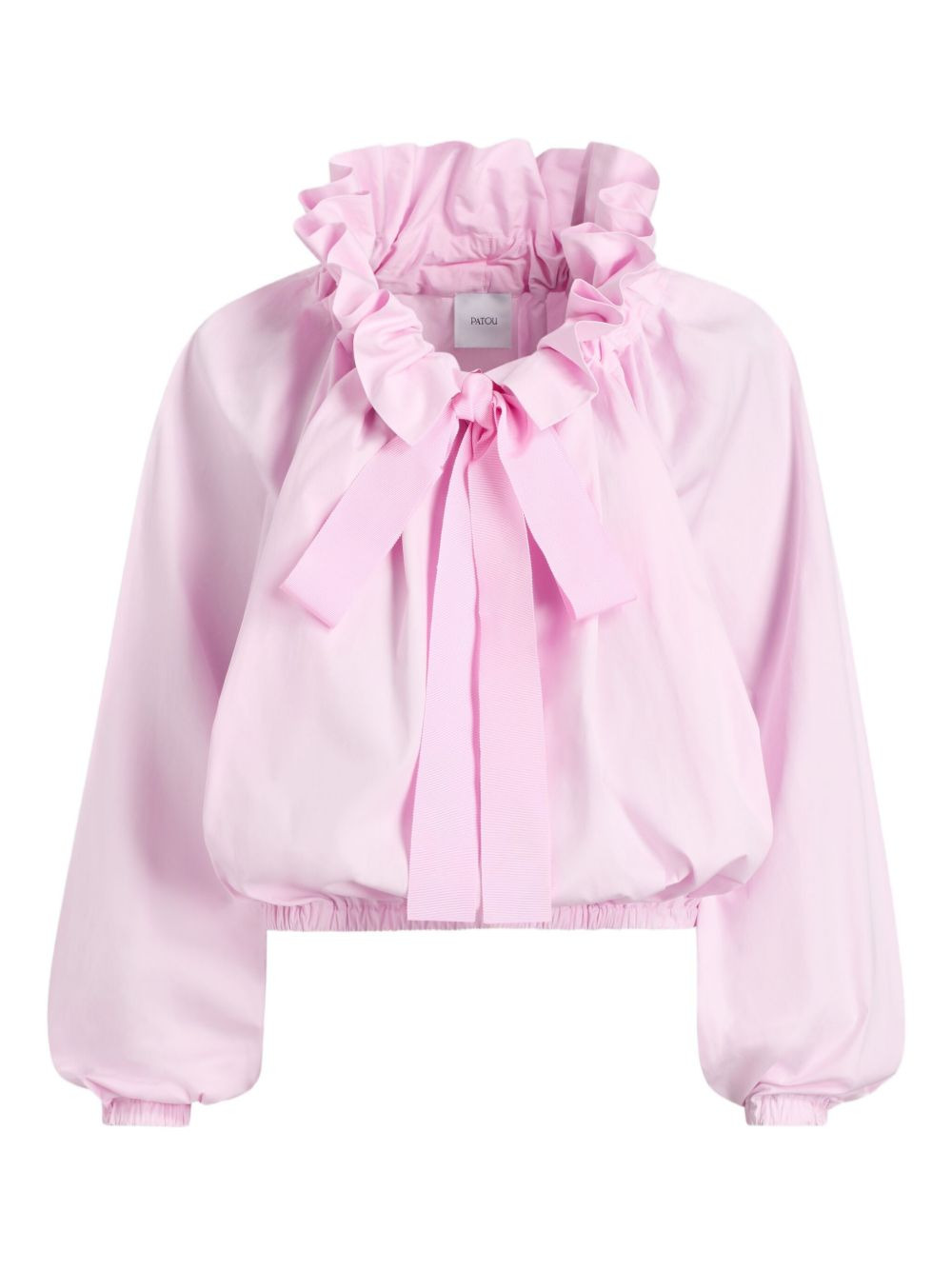 ruffled-neck balloon-sleeve blouse Highlights Imported Composition Organic Cotton 100%