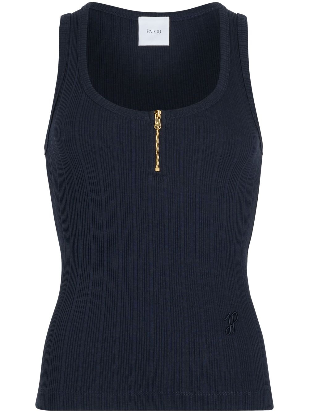 scoop-neck ribbed tank top Highlights - Navy blue - Short front zip fastening - Scoop neck - Sleeveless Imported Composition Organic Cotton 100%