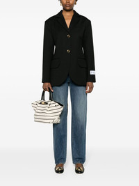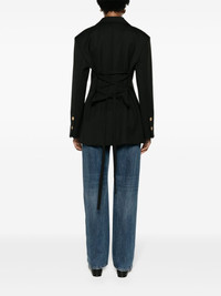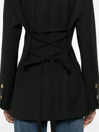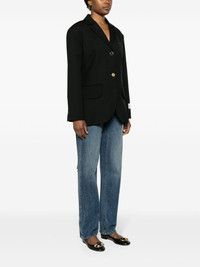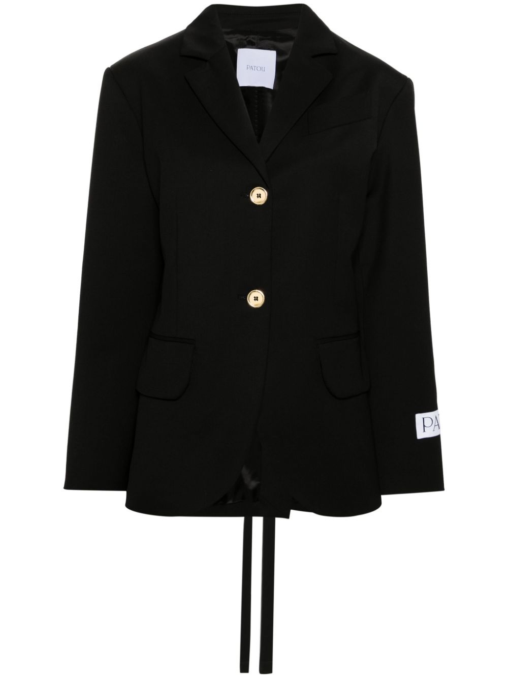 single-breasted belted blazer Patou offers an elegant style with this blazer. It's crafted from black virgin wool to a classic single-breasted profile and elevated by a matching belt and gold-tone logo-engraved buttons. Highlights - Black - Virgin wool blend - Logo patch at the sleeve - Notched lapels - Front button fastening - Shoulder pads - Long sleeves - Buttoned cuffs - Belted waist - Chest welt pocket - Two front flap pockets - American rear vent - Satin lining - Straight hem Imported Composition Outer: Virgin Wool 97%, Spandex/Elastane 3% Lining: Polyester 100% SIZE & FIT Model measurements Height 5 ft 11 in(1.8 m) Bust/Chest 31.49 in(80 cm) Hips 36.61 in(93 cm) Waist 24.4 in(62 cm) FittingInformation Designed for a relaxed fit, this piece allows for comfort and movement when worn The tie fastening gives an adaptable and personalised fit Made from a midweight non-stretch fabric, this piece offers minimal elasticity when worn This piece fits true to size – take your usual size