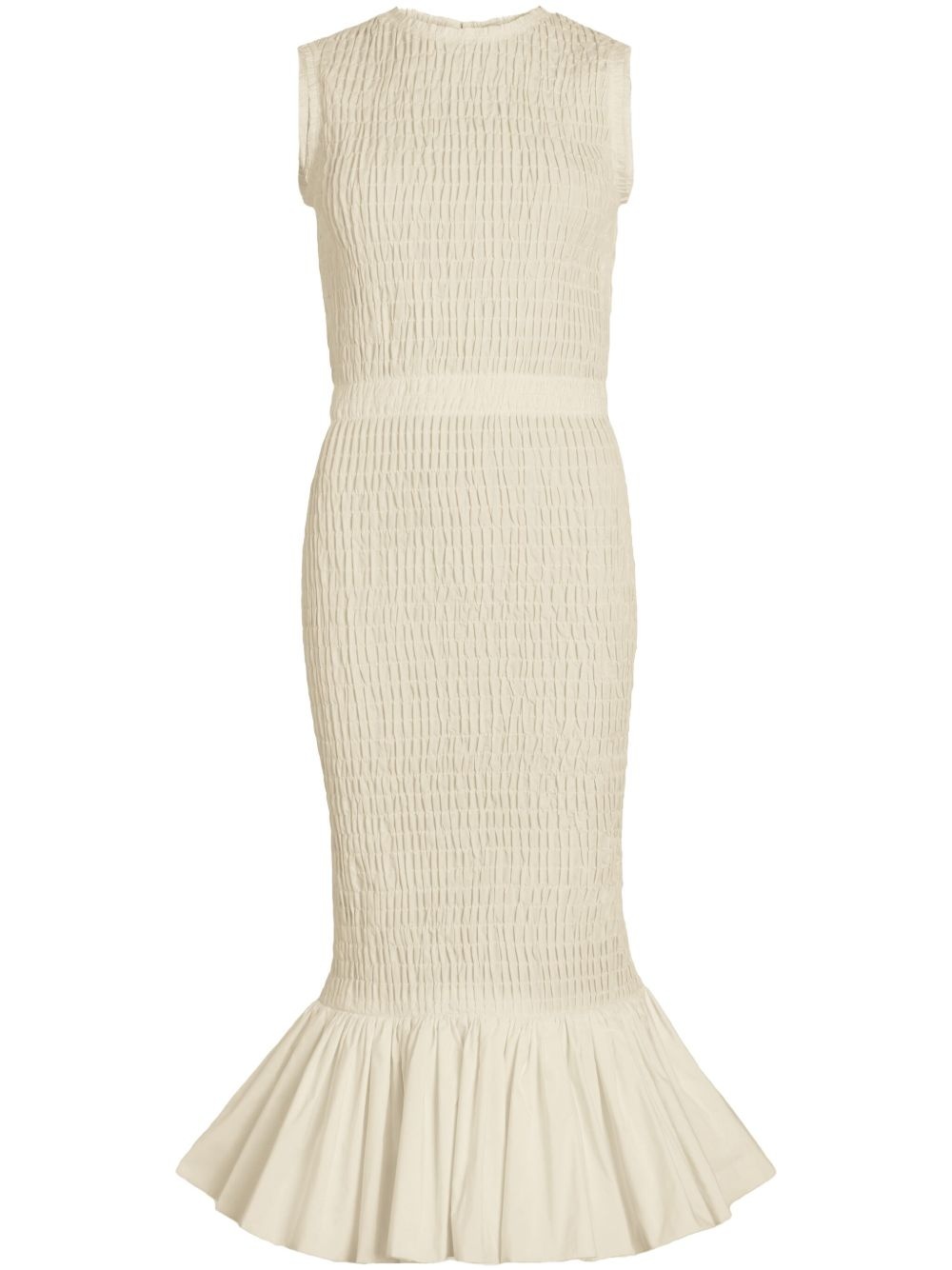 smocked dress Highlights - Beige - Crew neck - Sleeveless - Peplum hem - Mid-length Imported Composition Polyester 100%