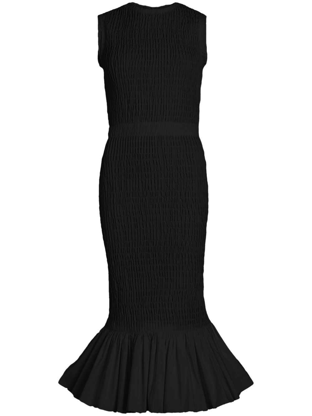 smocked midi dress Highlights - Black - Rear zip fastening - Peplum hem - Round neck - Sleeveless Imported Composition Polyester 100%