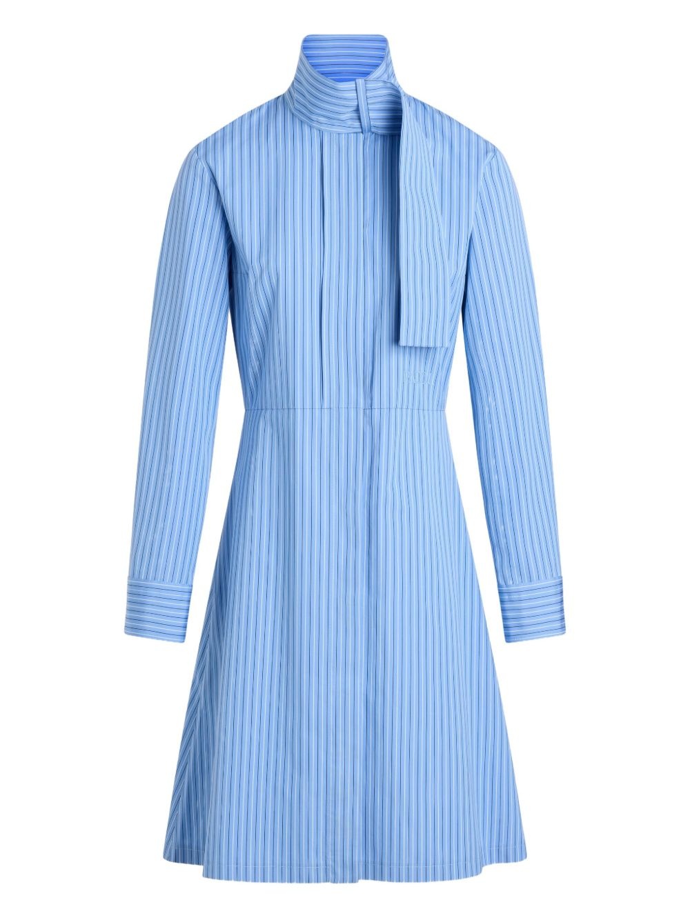 stripe scarf-collar shirt dress Highlights - Light blue - Pinstripe pattern - Scarf collar - Long sleeves - A-line skirt - Concealed button placket Imported Composition Organic Cotton 100% Washing instructions Machine Wash