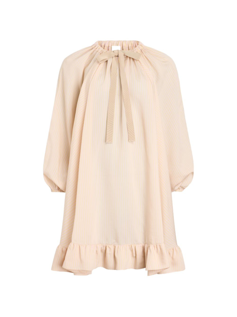 striped-pattern tie-neck mini dress Highlights - Light orange - Striped - Tie detail - Ruffled hem - Long sleeves - Elasticated cuffs Imported Composition Lyocell 84%, Silk 16% Washing instructions Dry Clean Only