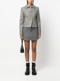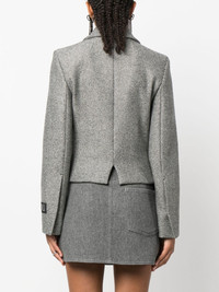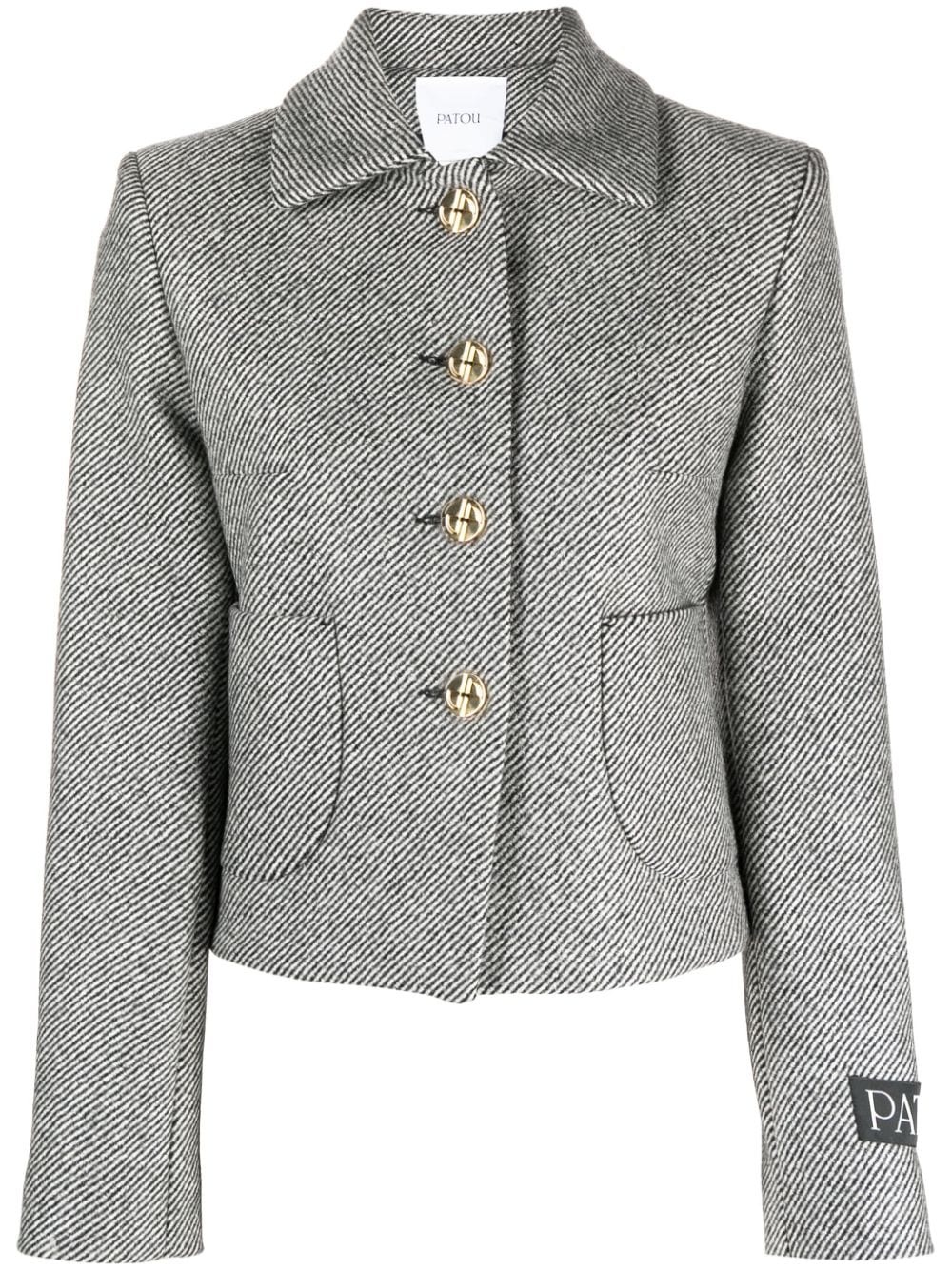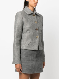 textured virgin-wool short jacket Patou's affinity for elevated simplicity is captured in the clean lines of this grey-hued virgin-wool jacket. Characterised by a fitted silhouette, it's decorated with gold-tone buttoning that nods to the label's eccentric spirit. Highlights - Grey - Virgin wool - Classic collar - Shoulder pads - Long sleeves - Gold-tone buttons - Two side patch pockets - Straight hem Imported Composition Virgin Wool 100% SIZE & FIT Model measurements Height 5 ft 10 in(1.77 m) Bust/Chest 31.88 in(81 cm) Hips 36.22 in(92 cm) Waist 24.01 in(61 cm) Measurement CHEST 31.1 in(79 cm) SLEEVE LENGTH 24.01 in(61 cm) LENGTH 20.86 in(53 cm) FittingInformation Designed for a slim fit that sits just away from the body offering a close yet comfortable fit The internal shoulder pads offer a structured shape Made from a midweight non-stretch fabric This piece fits true to size – take your usual size Washing instructions Dry Clean Only
