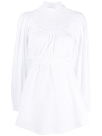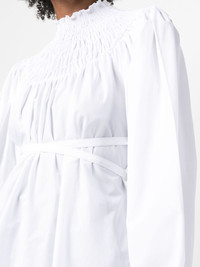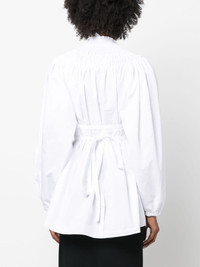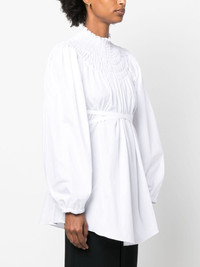tie-waist organic cotton blouse Made from crisp organic cotton, this optic white blouse from Patou is fitted with a whimsical frilled high neck whilst boasting flowy voluminous sleeves. A self-tie waist allows its silhouette to be adjusted. Highlights - Optical white - Organic cotton - Frilled high neck - Smocked panel - Long puff sleeves - Tied waist - Curved hem Imported Composition Organic Cotton 100% SIZE & FIT Model measurements Height 5 ft 11 in(1.8 m) Bust/Chest 31.49 in(80 cm) Hips 35.82 in(91 cm) Waist 24.8 in(63 cm) FittingInformation Designed to be unstructured, offering a loose fit throughout The adjustable tie waist gives a more adaptable and personalised fit Made from a midweight non-stretch fabric This piece fits true to size – take your usual size Washing instructions Machine Wash
