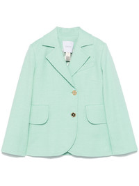 tweed blazer Highlights - Mint green - Cotton blend - Tweed - Double-breasted button fastening - Notched lapels - Shoulder pads - Long sleeves - Logo tag to the sleeve - Buttoned cuffs - Chest welt pocket - Two side flap pockets - Central rear vent - Full lining - Straight hem Imported Composition Polyester 100%, Cotton 97%, Polyamide 2%, Elastane 1% SIZE & FIT Model measurements Height 5 ft 10 in(1.78 m) Bust/Chest 33.85 in(86 cm) Hips 36.61 in(93 cm) Waist 26.77 in(68 cm) FittingInformation Designed for a slim fit that sits just away from the body offering a close yet comfortable fit The internal shoulder pads offer a structured shape Made from a midweight fabric