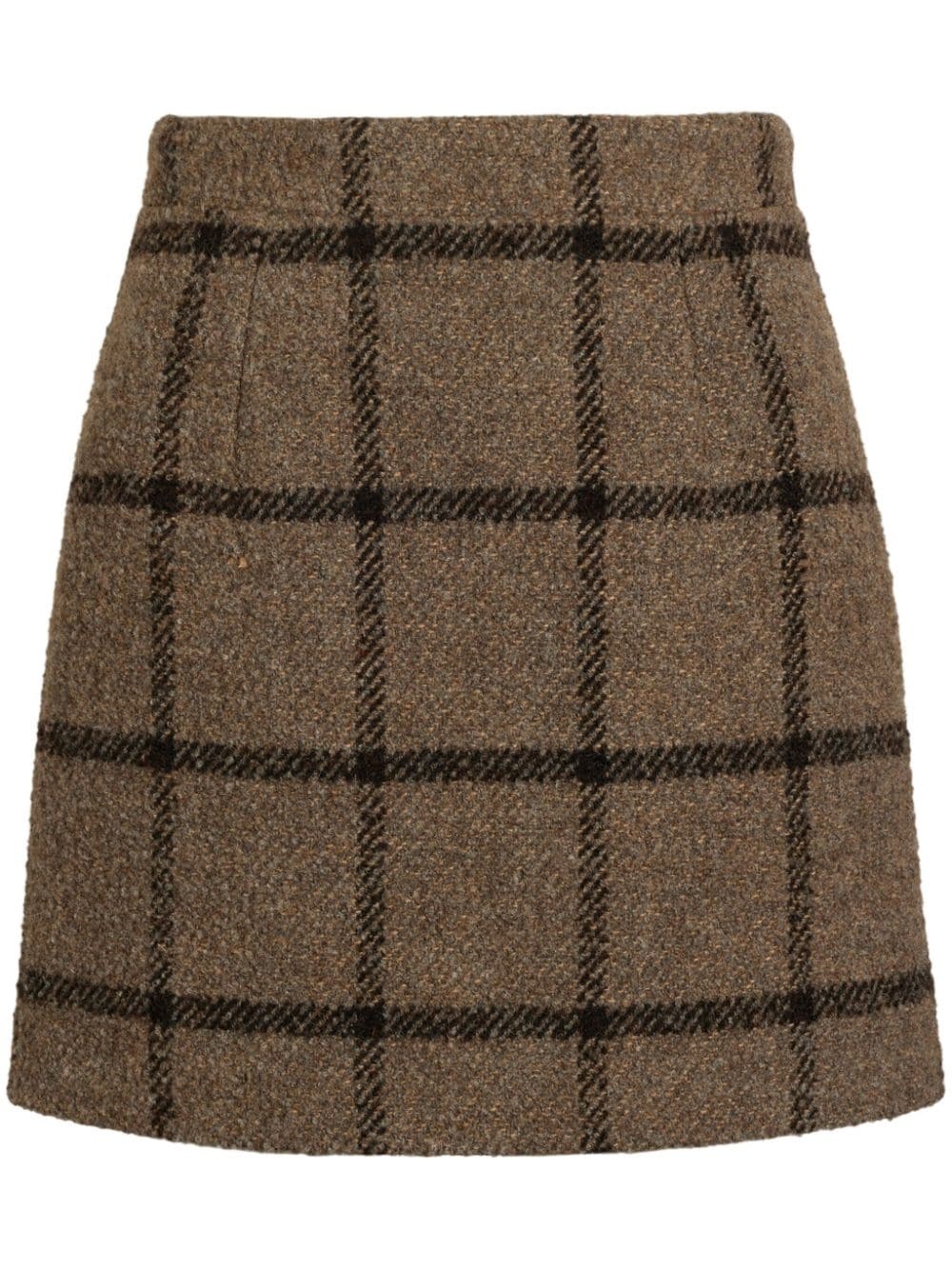tweed mini skirt Highlights - Brown - Viscose crepe/recycled virgin wool - Tweed - Check pattern - Mid-rise - Concealed rear fastening - Thigh-length Imported Composition Lining: Viscose Crepe 100% Outer: Recycled Virgin Wool 100%