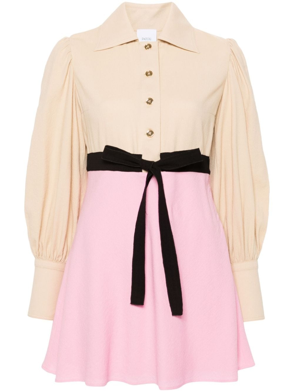 two-tone mini dress Highlights - Taupe/blush pink - Seersucker texture - Cutaway collar - Long sleeves - Buttoned cuffs - Drawstring waist - Flared hem - Partial lining - Front button fastening Imported Composition Viscose 59%, Cotton 40%, Elastane 1% SIZE & FIT Model measurements Height 5 ft 9 in(1.75 m) Bust/Chest 34.64 in(88 cm) Hips 36.61 in(93 cm) Waist 26.37 in(67 cm) FittingInformation Designed for a slim fit that sits just away from the body offering a close yet comfortable fit The adjustable drawstring means that you can adjust this piece’s fit to suit your comfort and preference Made from a midweight stretch fabric, this piece offers elasticity and flexibility when worn This piece fits true to size – take your usual size