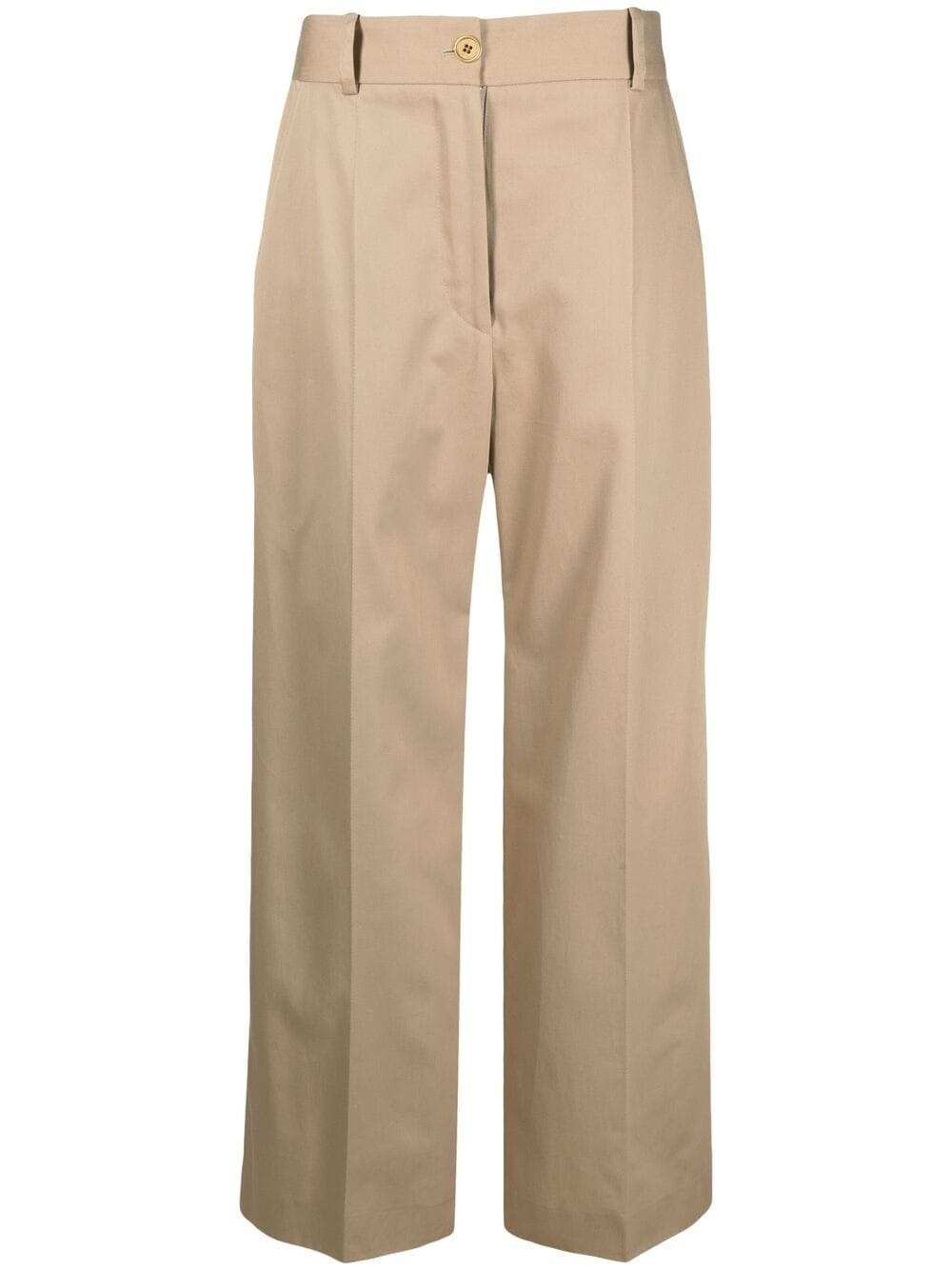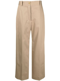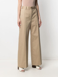 wide-leg tailored trousers camel brown cotton wide leg button fastening high waist belt loops Imported Composition Cotton 100% SIZE & FIT Model measurements Height 5 ft 9 in(1.75 m) Bust/Chest 32.67 in(83 cm) Hips 36.22 in(92 cm) Waist 24.8 in(63 cm) Measurement INSIDE LEG 30.31 in(77 cm) HIPS 36.22 in(92 cm) WAIST 25.19 in(64 cm) FittingInformation This piece fits true to size. We recommend you get your regular size Designed to be fitted at the waist and hips, loose over the leg Made with a mid-weight non-stretch fabric