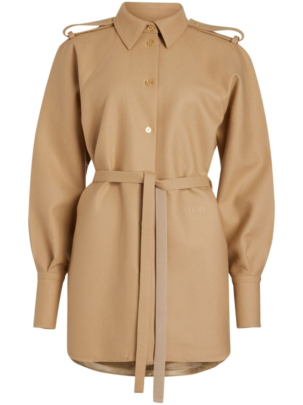 mini shirt dress Highlights - Sand beige - Virgin wool blend - Straight-point collar - Front button fastening - Epaulettes - Long raglan sleeves - Buttoned cuffs - Belted waist - Curved hem Imported Composition Outer: RWS Virgin Wool 80%, Polyamide 20% Lining: Viscose 100%