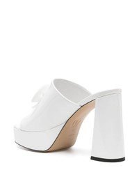 x Bettina Vermillon Glossy Anitta 110mm mules Highlights - White - Calf leather - Patent finish - Applique logo - Peep toe - Single toe strap - Open back - Branded leather footbed - 110mm high block heel - 30mm platform sole - Leather outsole - Slip-on style Made in Italy Composition Sole: Calf Leather 100% Outer: Patent Calf Leather 100% Lining: Calf Leather 100% SIZE & FIT Measurement HEEL 4.52 in(11.5 cm) Sole height 1.37 in(3.5 cm)