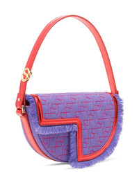 x Sita Le Petit Patou shoulder bag Made from recycled cotton and calf leather in purple, blue and red, Patou's Le Patou bag is defined by its curve-edge body and cut-out foldover flap. Elevated with polished gold-tone hardware, this accessory benefits from an adjustable shoulder strap. Highlights - Purple/blue/red - Recycled cotton - Leather trim - Single flat top handle - Front flap closure - Fringe detailing - Gold-tone hardware Imported Composition Outer: Recycled Cotton 70%, Calf Leather 30% SIZE & FIT Model measurements Height 5 ft 9 in(1.76 m) Bust/Chest 31.49 in(80 cm) Hips 36.61 in(93 cm) Waist 24.8 in(63 cm) Measurement DEPTH 1.57 in(4 cm) HEIGHT 5.11 in(13 cm) STRAP 5.9 in(15 cm) WIDTH 8.66 in(22 cm) HANDLE 5.11 in(13 cm)