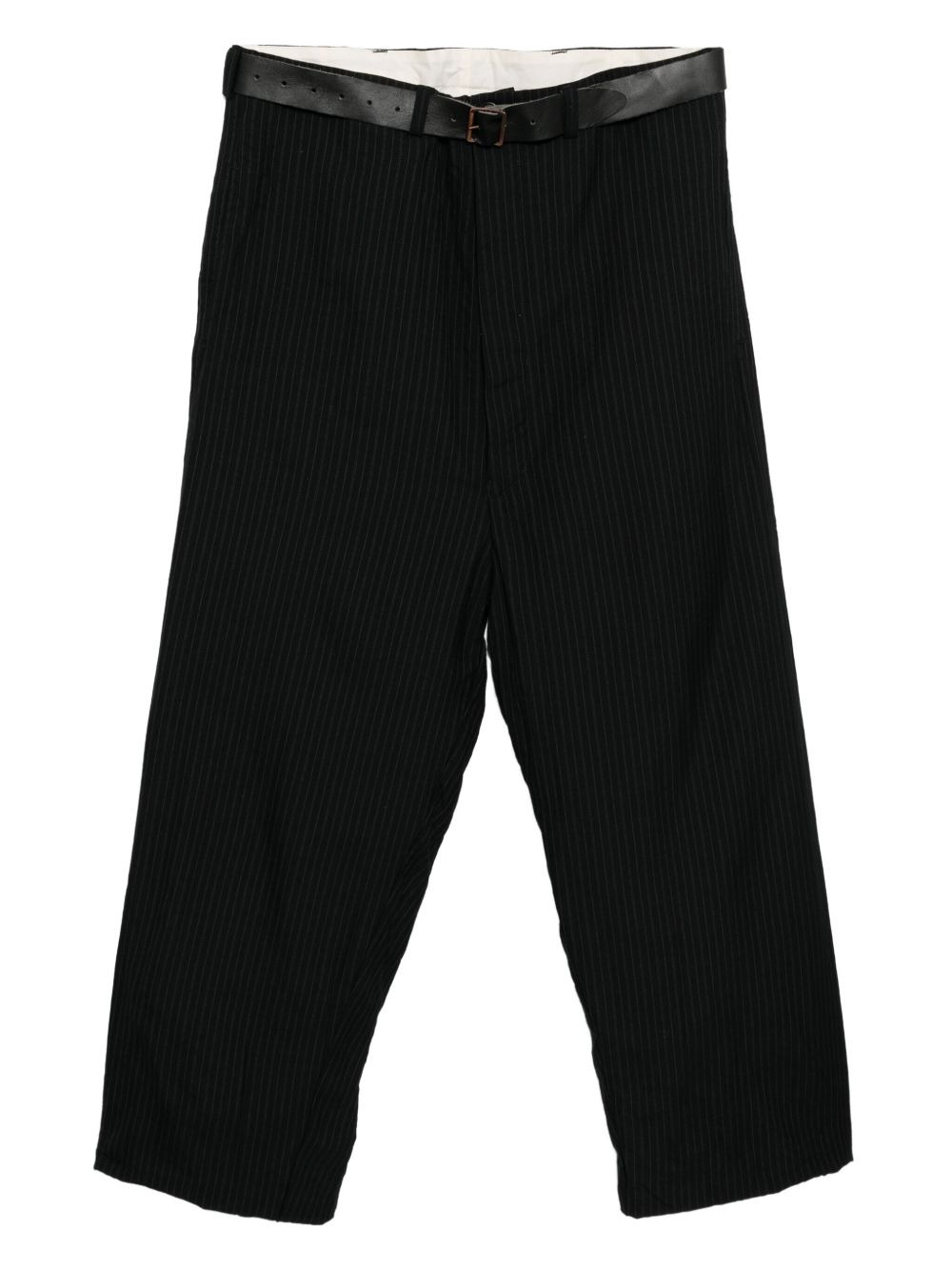 striped trousers Highlights - Black - Front button fastening - Two side jetted pockets - Rear flap pocket - Detachable and adjustable waist belt Made in United Kingdom Composition Lining: Cotton 100% Outer: Wool 100% SIZE & FIT Model measurements Height 6 ft 2 in(1.88 m) Bust/Chest 33.46 in(85 cm) Hips 36.22 in(92 cm) Waist 27.55 in(70 cm) FittingInformation Designed for a relaxed straight leg, allowing a comfortable and loose fit over the leg The belt offers adjustability for fitted preferences Made from a midweight non-stretch fabric This piece fits large – take one size down Washing instructions Hand Wash