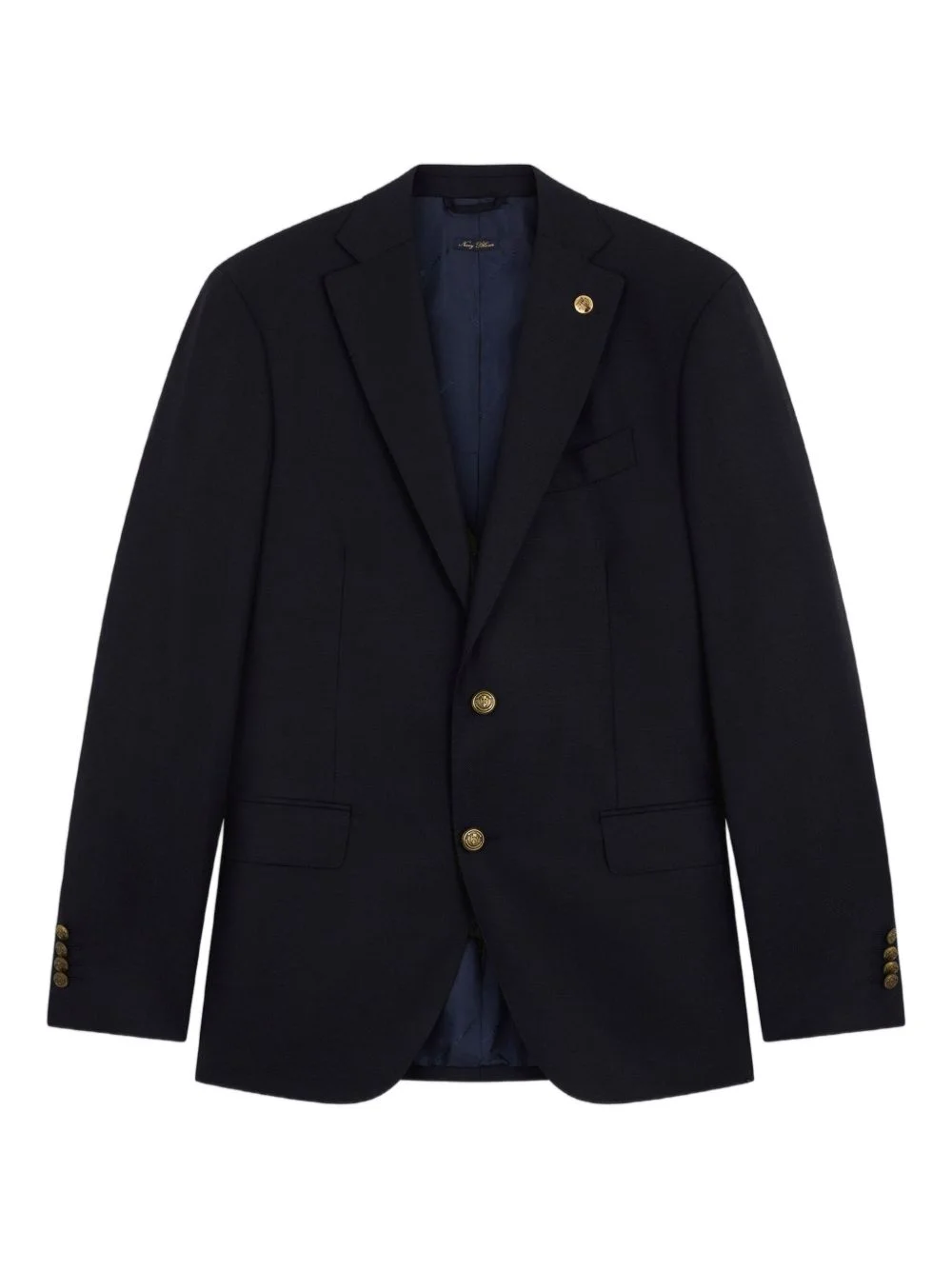 button blazer Highlights - Navy blue - Textured finish - Button fastening - Notched lapels - Chest welt pocket - Flap pockets Imported Composition Outer: Virgin Wool 100% Lining: Cupro 100% Washing instructions Dry Clean Only