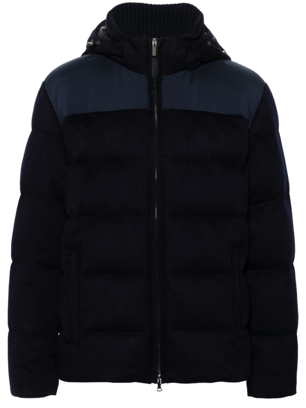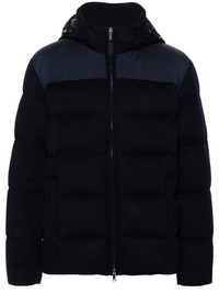 cashmere puffer jacket Highlights - Navy blue - Cashmere - Padded design - Detachable drawstring hood - Long sleeves - Front zip fastening pockets - Straight hem - Full lining - Front two-way zip fastening Made in Italy Composition Outer: Cashmere 100% Lining: Polyamide 100%, Polyester 100%, Duck Down 70%, Feather 30% SIZE & FIT Model measurements Height 6 ft 2 in(1.87 m) Bust/Chest 36.41 in(92.5 cm) Hips 37 in(94 cm) Waist 29.52 in(75 cm) FittingInformation Designed for a regular fit, allowing for a comfortably loose fit throughout the body Made from a padded non-stretch fabric, giving it no natural elasticity This piece fits true to size – take your usual size