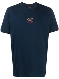 crew neck logo print T-shirt navy blue organic cotton crew neck logo print at the chest short sleeves straight hem Imported Composition Organic Cotton 100% SIZE & FIT Model measurements Height 6 ft 1 in(1.86 m) Bust/Chest 35.43 in(90 cm) Hips 35.43 in(90 cm) Waist 29.92 in(76 cm) Washing instructions Machine Wash
