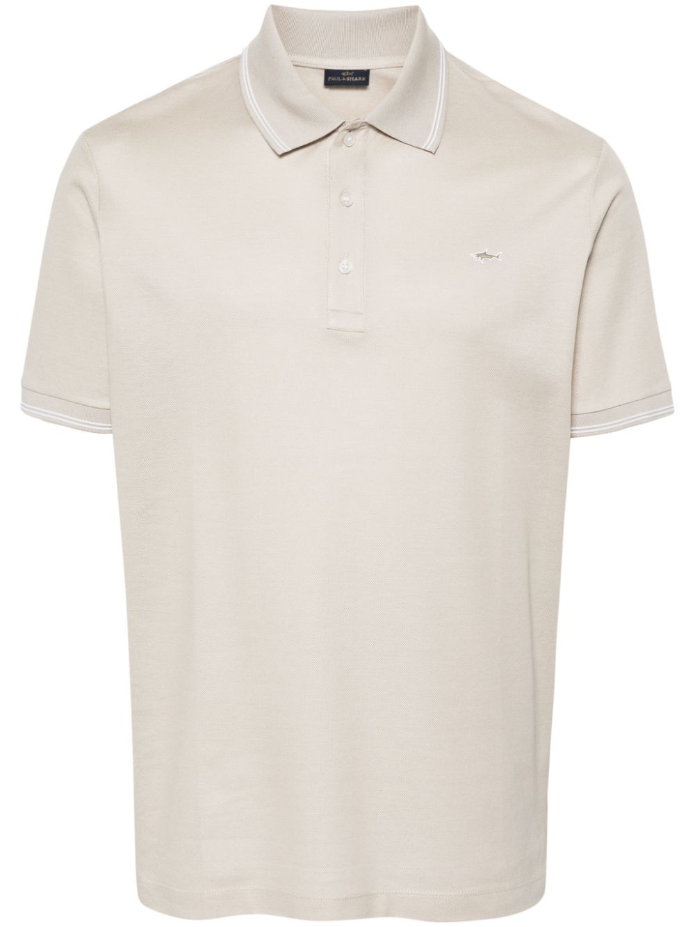 embroidered-logo polo shirt Highlights - Beige - Cotton - Pique weave - Polo collar - Striped border - Embroidered logo at the chest - Short sleeves - Short side slits - Straight hem - Short front button fastening Made in Italy Composition Cotton 100% SIZE & FIT Model measurements Height 6 ft 2 in(1.87 m) Bust/Chest 36.41 in(92.5 cm) Hips 37 in(94 cm) Waist 29.52 in(75 cm) FittingInformation Designed for a regular fit, this polo shirt offers a comfortable loose fit throughout the body Made from a midweight non-stretch fabric, this piece offers minimal elasticity when worn This piece fits true to size – take your usual size Washing instructions Machine Wash