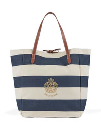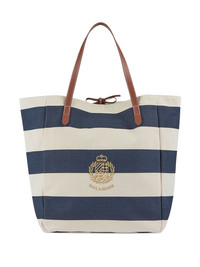 embroidered-logo stripe-pattern bag Highlights - Blue - Striped pattern - Leather handles - Embroidered logo - Top handles - Tie fastening Imported Composition Outer: Cotton 100% Lining: Polyester 100%