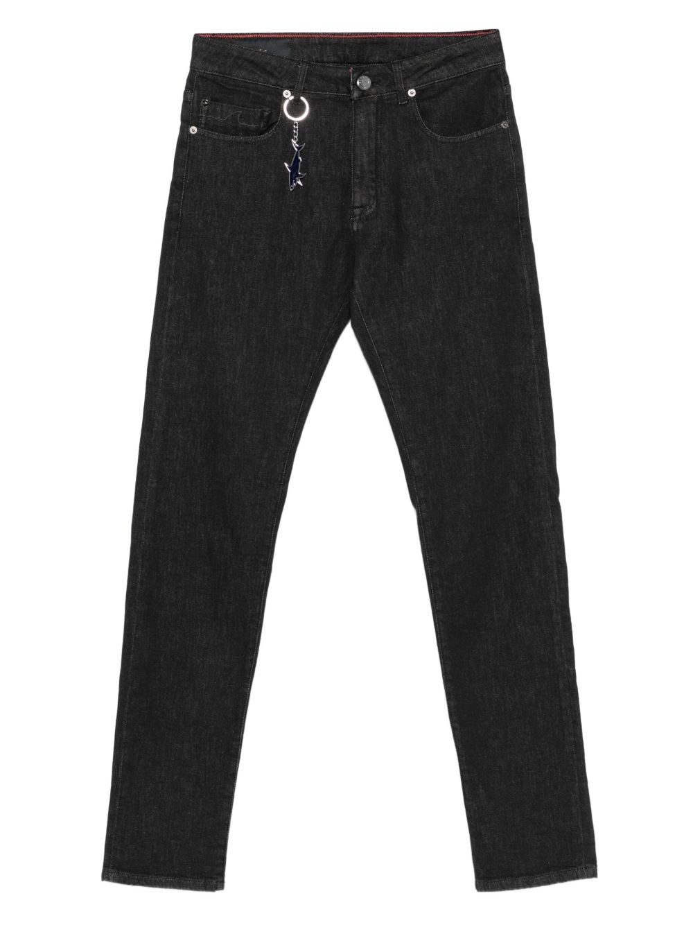 five-pockets jeans Highlights - Black - Shark-shaped key charm - Five-pocket - Button fly - Belt loops Imported Composition Cotton 99%, Spandex/Elastane 1% Washing instructions Machine Wash
