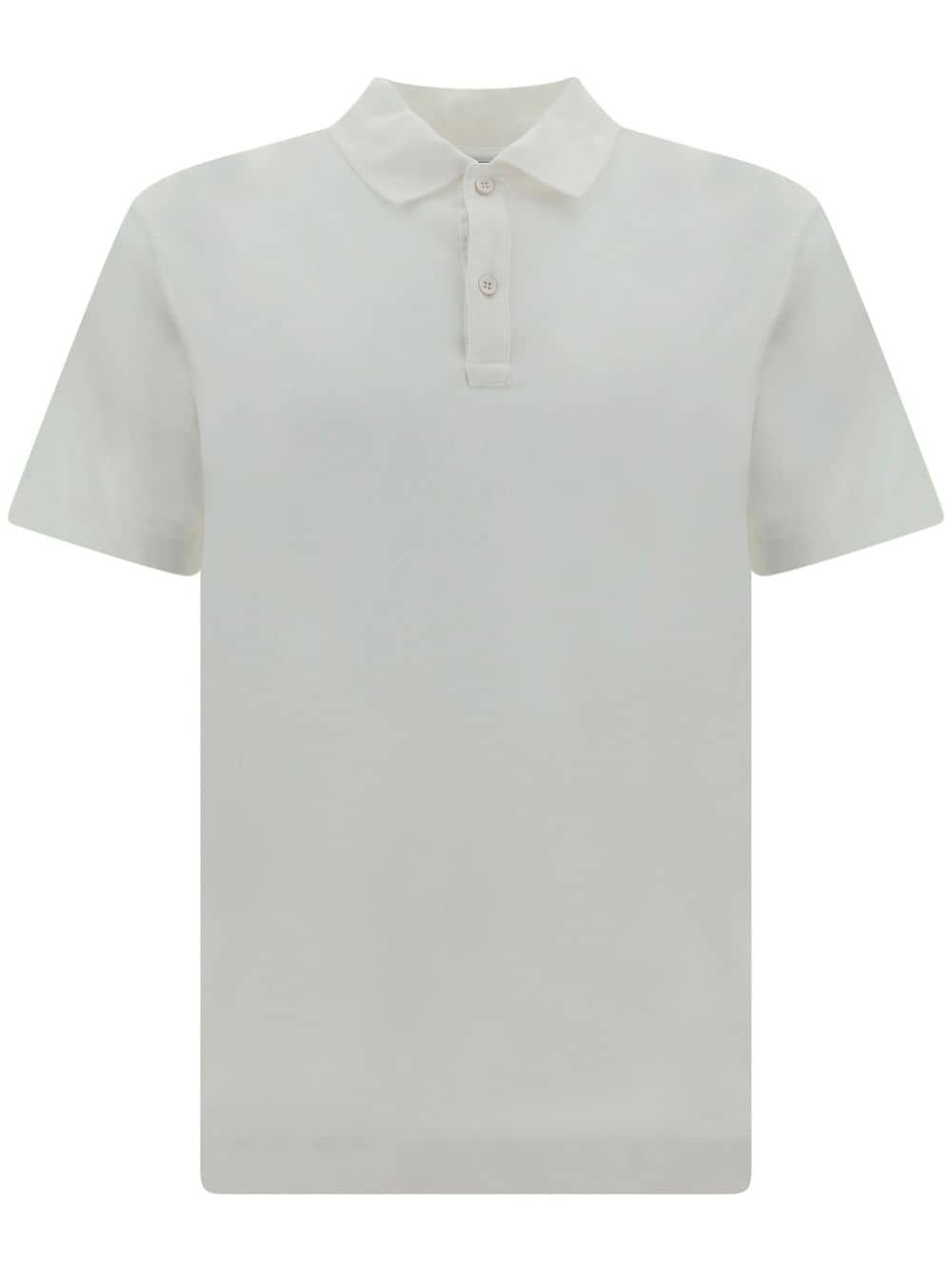 garment-dyed cotton polo shirt Highlights - Ivory white - Cotton - Pique weave - Garment dyed - Polo collar - Front button placket - Short sleeves - Straight hem Made in Italy Composition Cotton 100% SIZE & FIT FittingInformation Designed for a relaxed fit, this polo shirt offers comfort and movement Made from a midweight non-stretch fabric, this piece offers minimal elasticity when worn