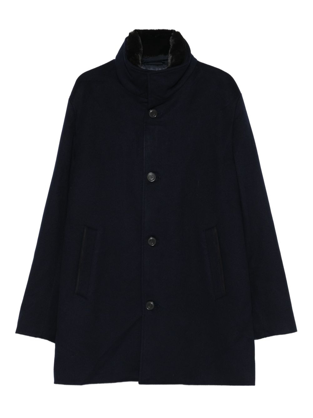 high-neck fur-trimmed coat Highlights - Navy blue - High neck - Fur trim - Button fastening - Welt pockets - Straight hem Made in Italy Composition Lining: Polyester 55%, Viscose 45% Outer: Cashmere 100% SIZE & FIT Model measurements Height 6 ft 1 in(1.85 m) Bust/Chest 38.58 in(98 cm) Hips 37 in(94 cm) Waist 30.31 in(77 cm) Washing instructions Read Manufacturer Guidelines