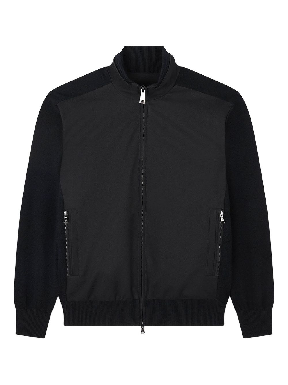 hybrid zip-up jacket Highlights - Black - Zip fastening - Ribbed hem - Side pockets - Contrasting panels Imported Composition Outer: Virgin Wool 100%, Polyester 100% Lining: Polyester 100% Washing instructions Dry Clean Only