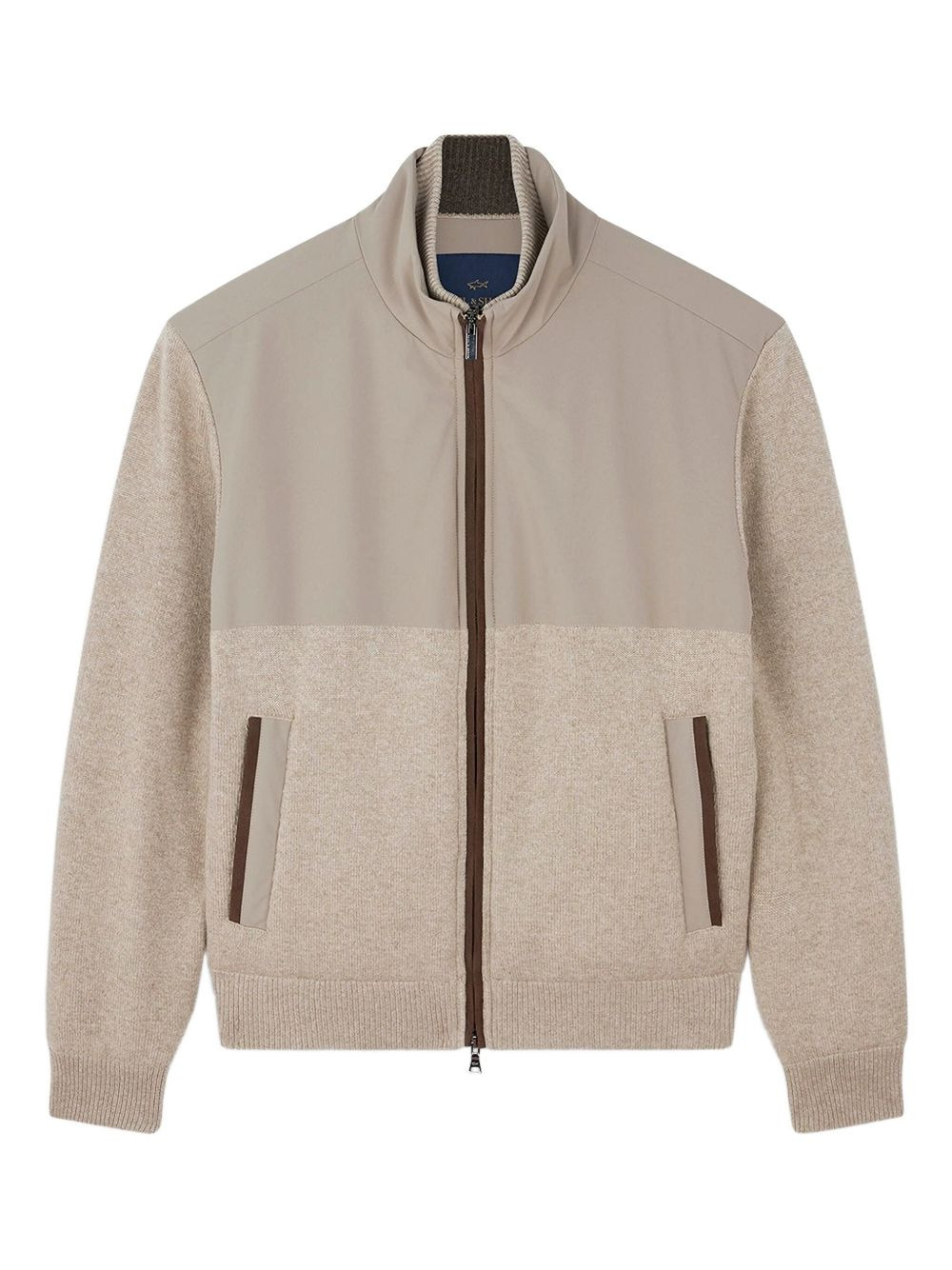 hybrid zip-up jacket Highlights - Beige - Zip front - Ribbed hem - Contrast trim Imported Composition Outer: Fabric 55%, Virgin Wool 45% Lining: Polyester 100% Washing instructions Do Not Wash/Do Not Dry Clean