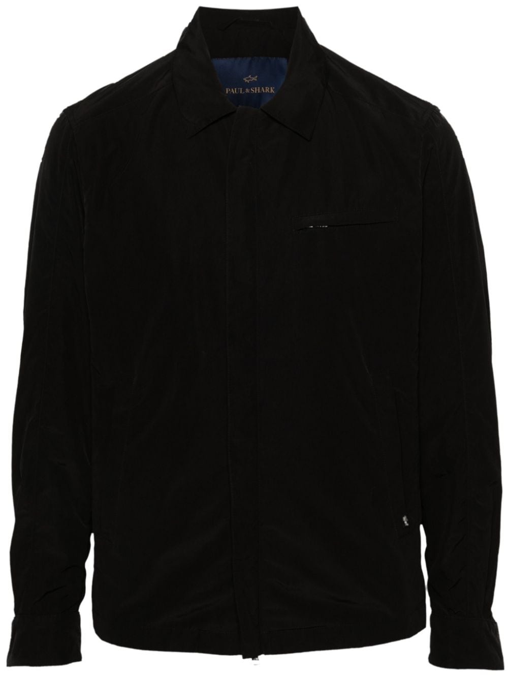 logo-applique jacket Highlights - Black - Shell - Applique logo to the rear - Classic collar - Long sleeves - Press-stud fastening cuffs - Zip-fastening chest pocket - Two side zip-fastening pockets - Straight hem - Front two-way zip fastening Imported Composition Polyester 70%, Nylon 30% SIZE & FIT Model measurements Height 6 ft 2 in(1.89 m) Bust/Chest 39.76 in(101 cm) Hips 37.4 in(95 cm) Waist 29.92 in(76 cm) FittingInformation Designed for a regular fit, allowing for a comfortably loose fit throughout the body Made from a lightweight non-stretch fabric This piece fits true to size – take your usual size Washing instructions Machine Wash