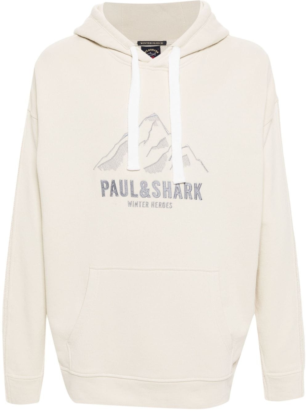 logo-embroidered hoodie Highlights - Beige - Organic cotton/virgin wool - Ribbed panelling - Embroidered logo to the front - Embroidered motif - Slouchy drawstring hood - Drop shoulder - Long sleeves - Front pouch pocket - Straight hem Imported Composition Organic Cotton 100%, Eco Virgin Wool 100% SIZE & FIT Model measurements Height 6 ft 1 in(1.86 m) Bust/Chest 37.4 in(95 cm) Hips 36.22 in(92 cm) Waist 29.52 in(75 cm) FittingInformation Designed to be unstructured, offering a loose fit throughout Made from a midweight non-stretch fabric, this piece offers minimal elasticity when worn This piece fits true to size – take your usual size