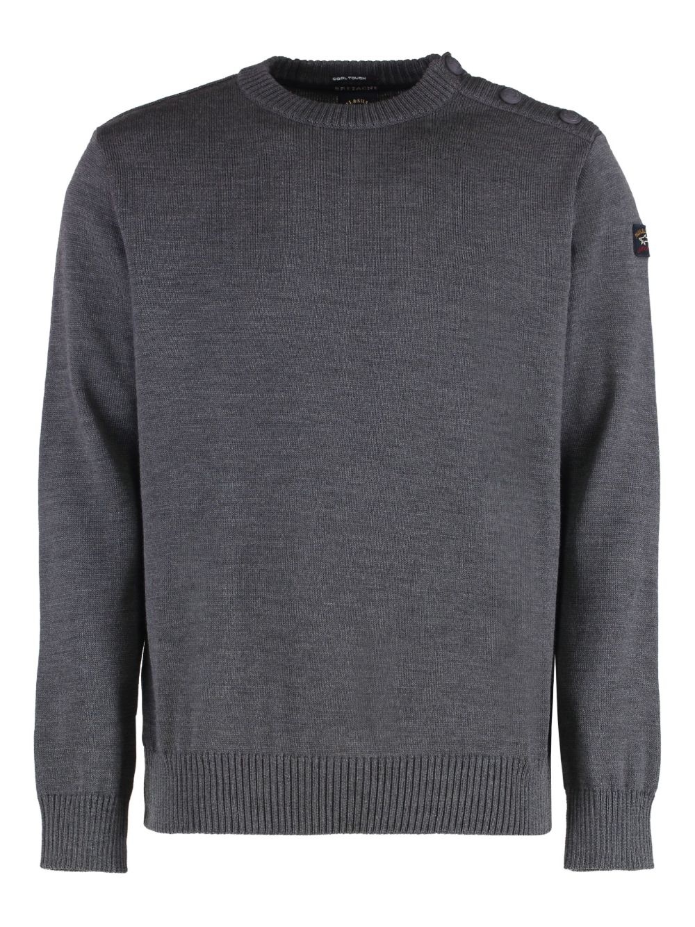 logo-patch sweatshirt Highlights - Dark grey - Round neck - Long sleeves - Straight hem Imported Composition Virgin Wool 100%