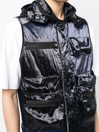 multi-pocket design gilet Highlights - Navy blue/black - High-shine finish - Stand-up collar - Front press-stud fastening - Zip-fastening chest pocket - Chest flap pocket - Front zip fastening pockets - Sleeveless - Straight hem Made in Italy Composition Nylon 100% SIZE & FIT Model measurements Height 6 ft 2 in(1.87 m) Bust/Chest 34.25 in(87 cm) Hips 36.22 in(92 cm) Waist 29.52 in(75 cm) FittingInformation Designed to be unstructured, offering a loose fit throughout The adjustable tabs allow for fitted preferences Made from a lightweight non-stretch fabric This piece fits true to size – take your usual size Washing instructions Machine Wash
