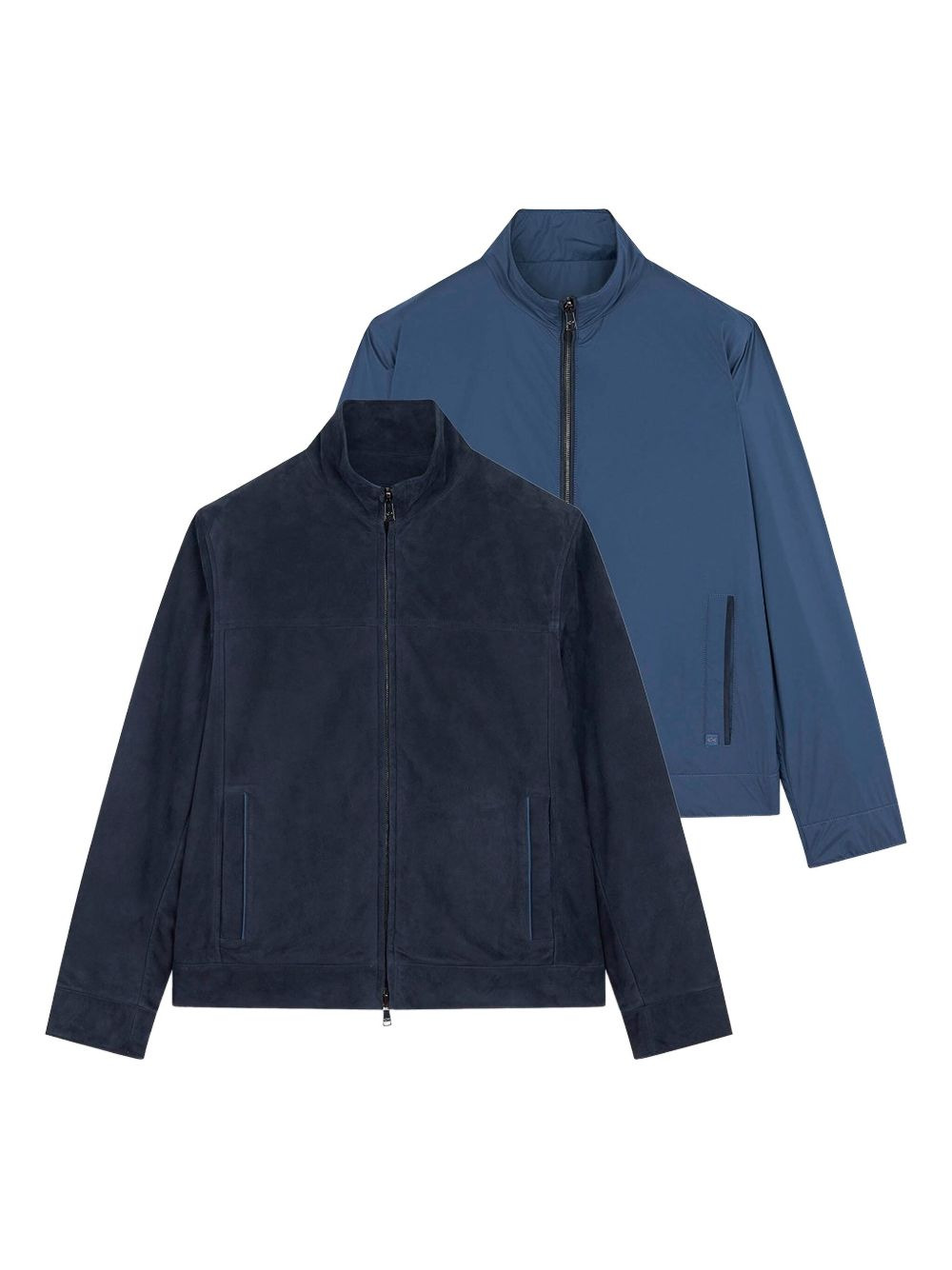 reversible suede jacket Highlights - Dark-blue - Suede leather - Zip fastening - High neck - Reversible design Imported Composition Outer: Goat Skin 100% Lining: Polyester 100% Washing instructions Specialist Cleaning