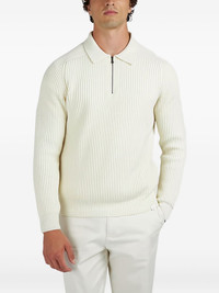 rib-knit halp-zip sweater Highlights - White - Ribbed knit - Half-zip fastening - Polo collar - Long sleeves - Ribbed hem - Straight hem Imported Composition Wool 80%, Nylon 20% Washing instructions Hand Wash