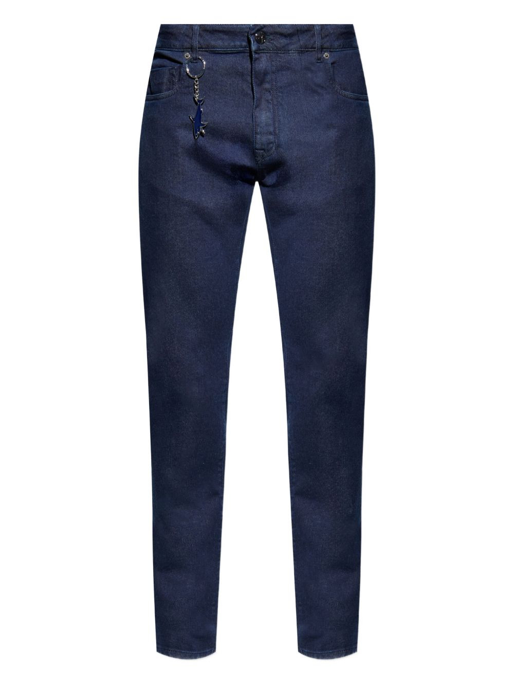 shark-keychain jeans Highlights - Dark-blue - Attached shark keychain - Five-pocket styling - Button fly - Straight leg - Mid-rise waist Made in Italy Composition Cotton 99%, Elastane 1% Washing instructions Read Manufacturer Guidelines