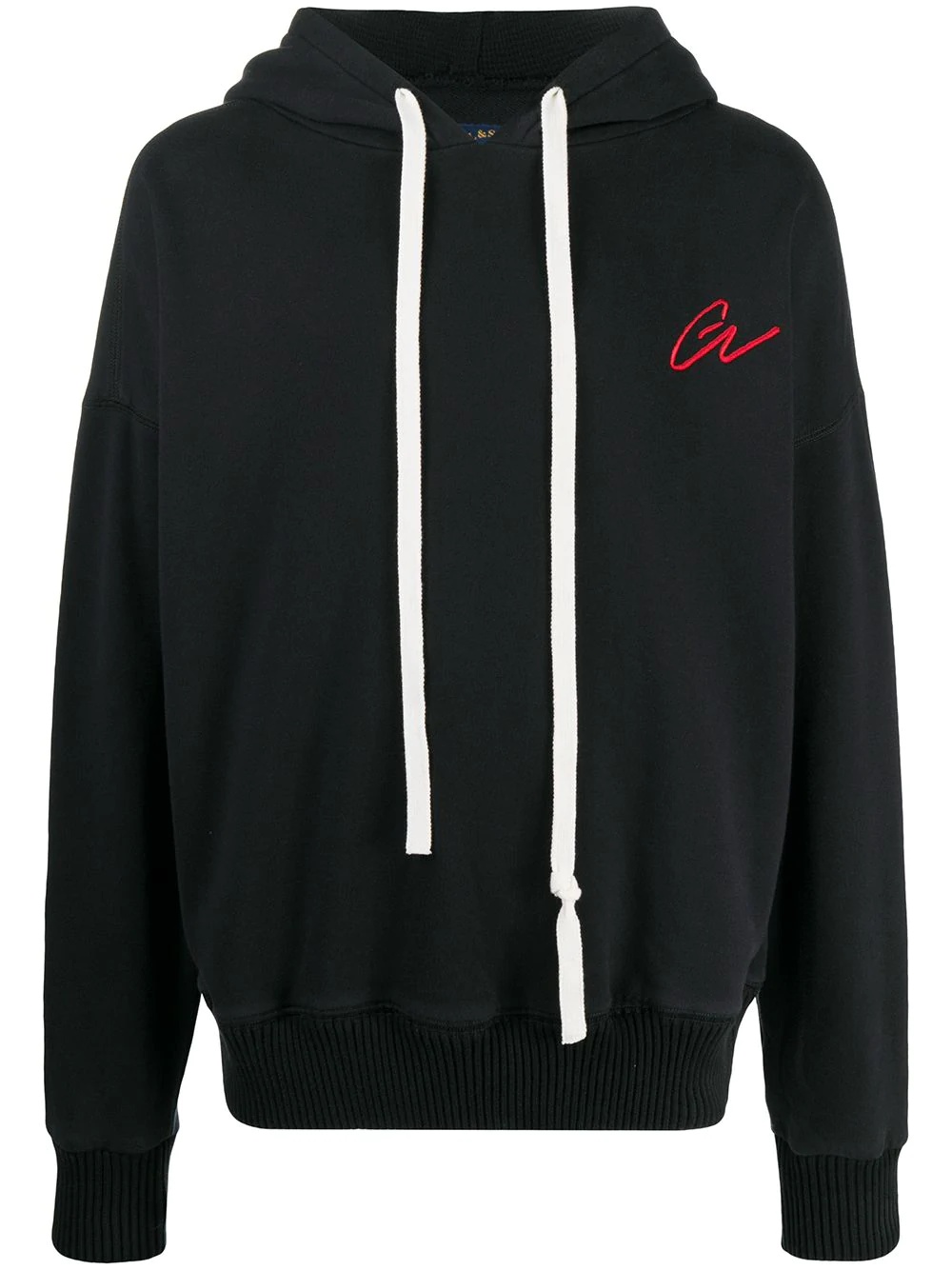 slouchy logo embroidered hoodie dark blue cotton embroidered logo at the chest drawstring hood long sleeves ribbed cuffs ribbed hem Made in Italy Composition Cotton 100% SIZE & FIT Model measurements Height 6 ft 1 in(1.86 m) Bust/Chest 35.43 in(90 cm) Hips 35.43 in(90 cm) Waist 29.92 in(76 cm) FittingInformation This piece fits true to size. We recommend you get your regular size Cut for a loose fit Made with a mid-weight fabric Washing instructions Machine Wash