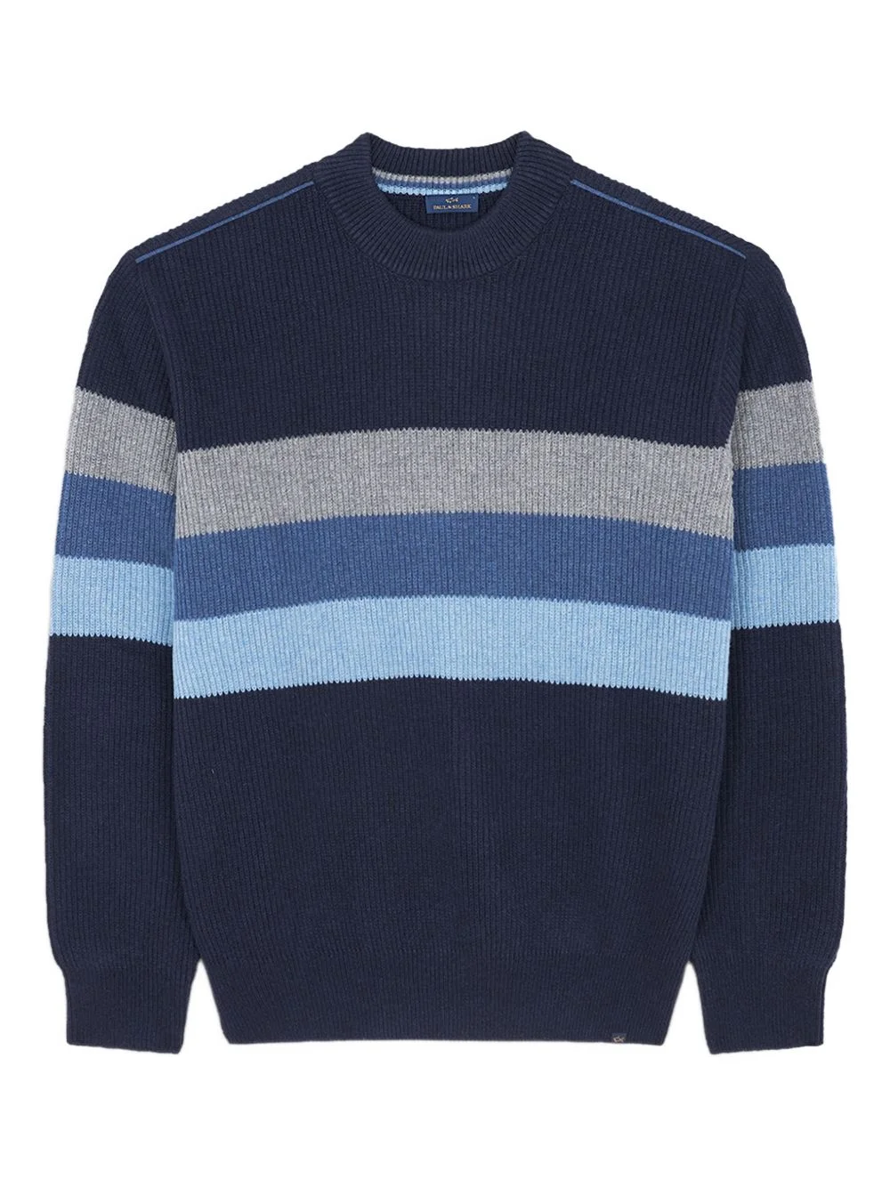 striped crew-neck sweater Highlights - Blue - Striped design - Ribbed knit - Crew neck Imported Composition Wool 80%, Nylon 20% Washing instructions Read Manufacturer Guidelines