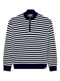 striped half-zip sweater Highlights - Night blue and white - Striped pattern - Half-zip fastening - Long sleeves - Ribbed trims Imported Composition Virgin Wool 90%, Cashmere 10% Washing instructions Read Manufacturer Guidelines